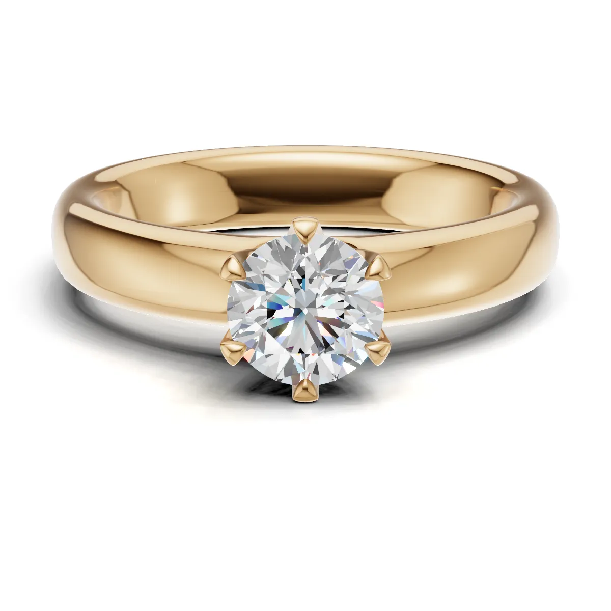Dieser exquisite Solitär-Ring ist ein Meisterwerk der Goldschmiedekunst. Der funkelnde Edelstein wird in einem eleganten Design von sechs kunstvoll gestalteten Krappen sicher umschlossen und entfaltet seinen strahlenden Glanz in jedem Lichtspiel. Das sorgfältig gearbeitete Ringband besticht durch seine angenehme, etwas schwerere Struktur, die Stabilität und Komfort perfekt miteinander vereint. Dank des großzügigen Einsatzes von hochwertigem Gold erhält dieser Ring eine außergewöhnliche Wertigkeit und zeitlose Eleganz.