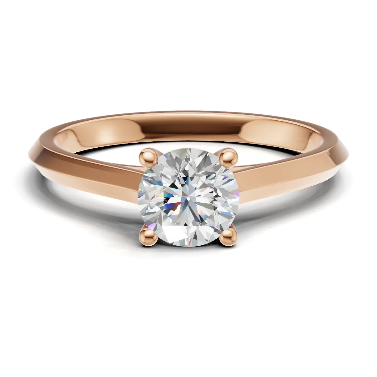 Dieser Cathedral Solitär wurde speziell für Brillantschliff-Diamanten entworfen und verbindet klassische Linienführung mit architektonischer Eleganz. Die ansteigenden Ringschultern erinnern an die Bögen einer Kathedrale und heben den zentralen Stein dezent, aber wirkungsvoll hervor. Vier fein gearbeitete Krappen halten den Diamanten sicher und lassen gleichzeitig viel Licht an den Stein – für maximale Brillanz. Das leicht zugespitzte Ringband unterstreicht die filigrane Silhouette und verleiht dem Design zusätzliche Raffinesse.