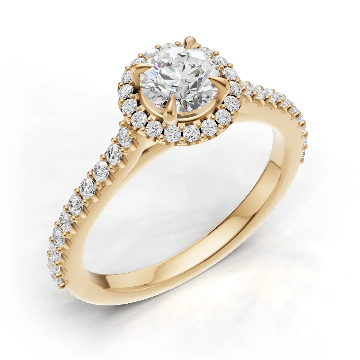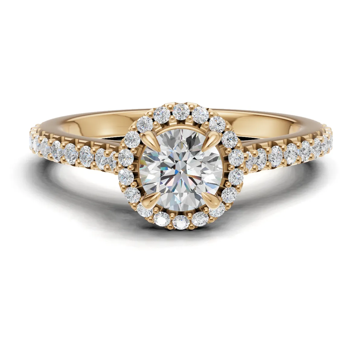 Halo Cathedral Verlobungsring mit Seitensteinen