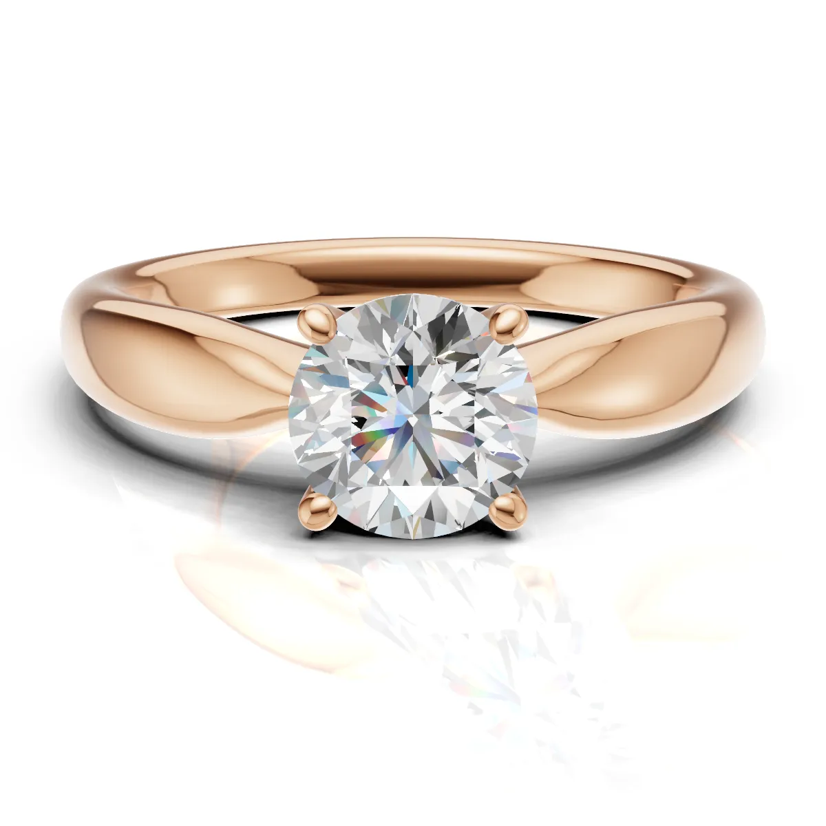 Dieser klassische Solitär-Ring überzeugt durch seine klare Formensprache und zeitlose Eleganz. Der zentrale Brillant wird von vier Krappen gehalten, die in einem filigranen Korb sitzen – eine Fassung, die den Diamanten sicher trägt und gleichzeitig viel Licht an den Stein lässt. Das Ringband verjüngt sich sanft zur Fassung hin, wodurch der Fokus elegant auf den Mittelstein gelenkt wird. Die schlanke Linienführung sorgt für eine besonders harmonische Proportion und ein angenehmes Tragegefühl.