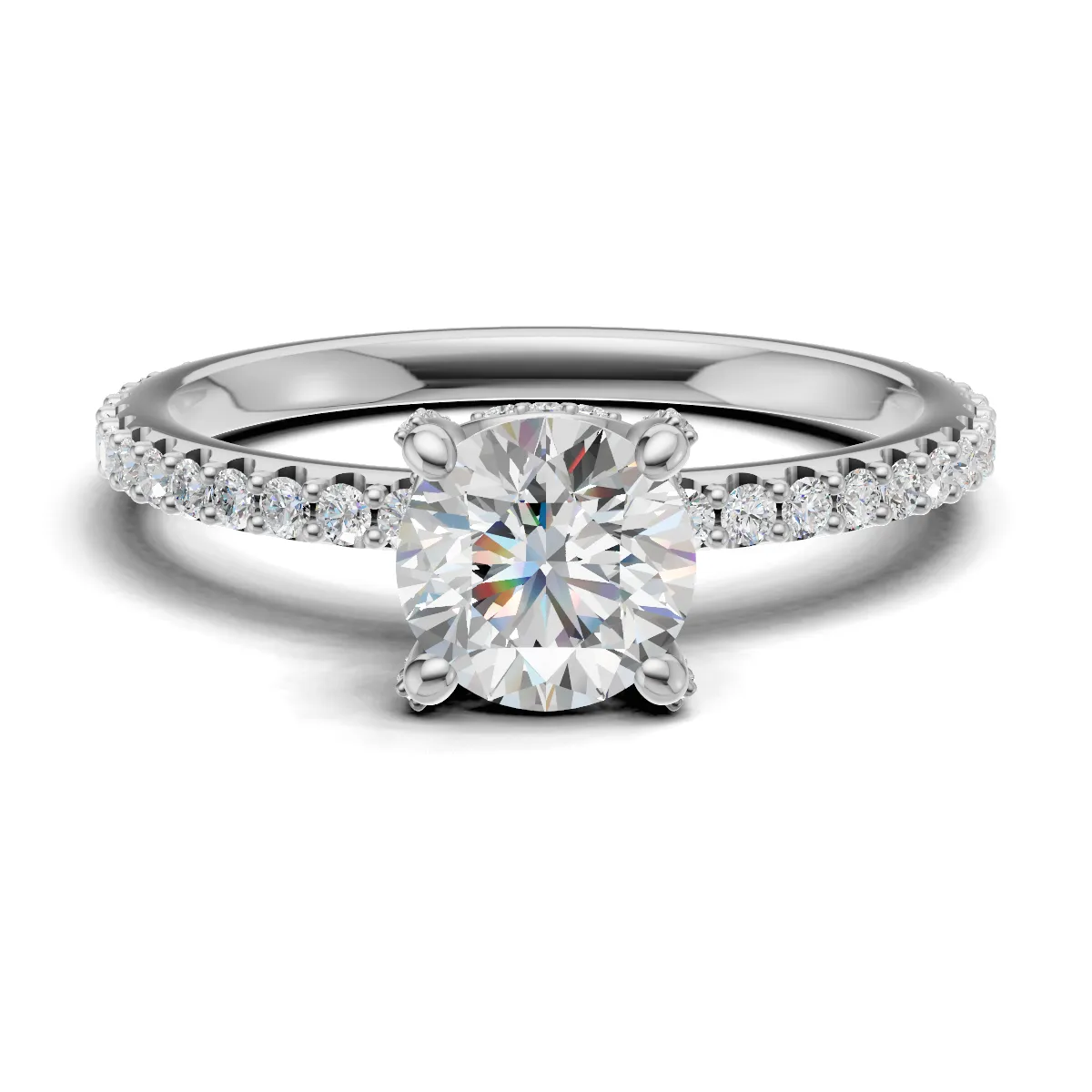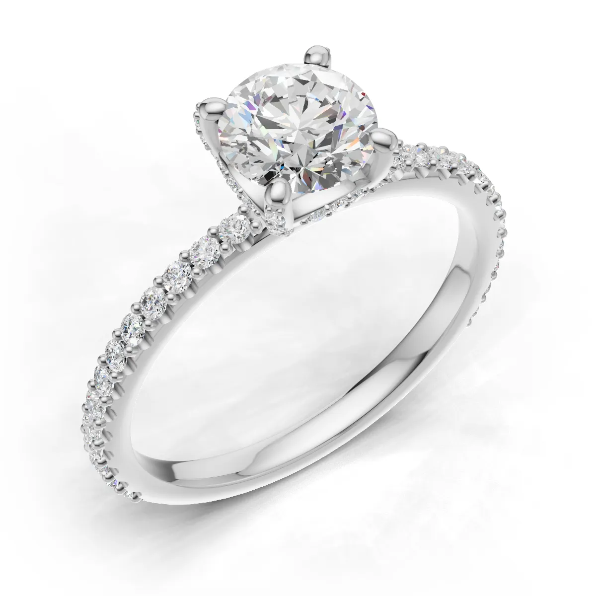 Dieses Design ist für alle, die das Funkeln lieben: Ein Pavé-Ring, der in jedem Detail brilliert. Nicht nur das Ringband, sondern auch die Krappen der Fassung sind mit feinsten Akzentdiamanten besetzt – und verleihen dem Ring eine außergewöhnliche Präsenz. Je nach Größe des Mittelsteins werden zwischen 50 und 70 kleine Diamanten in präziser Handarbeit gefasst. So entsteht ein durchgehender Glanz, der den zentralen Brillanten optisch noch stärker hervorhebt und das Licht aus jedem Winkel reflektiert.