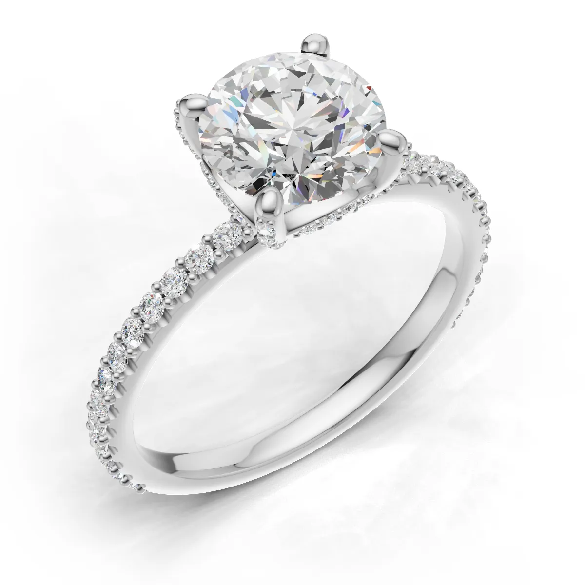 Dieses Design ist für alle, die das Funkeln lieben: Ein Pavé-Ring, der in jedem Detail brilliert. Nicht nur das Ringband, sondern auch die Krappen der Fassung sind mit feinsten Akzentdiamanten besetzt – und verleihen dem Ring eine außergewöhnliche Präsenz. Je nach Größe des Mittelsteins werden zwischen 50 und 70 kleine Diamanten in präziser Handarbeit gefasst. So entsteht ein durchgehender Glanz, der den zentralen Brillanten optisch noch stärker hervorhebt und das Licht aus jedem Winkel reflektiert.