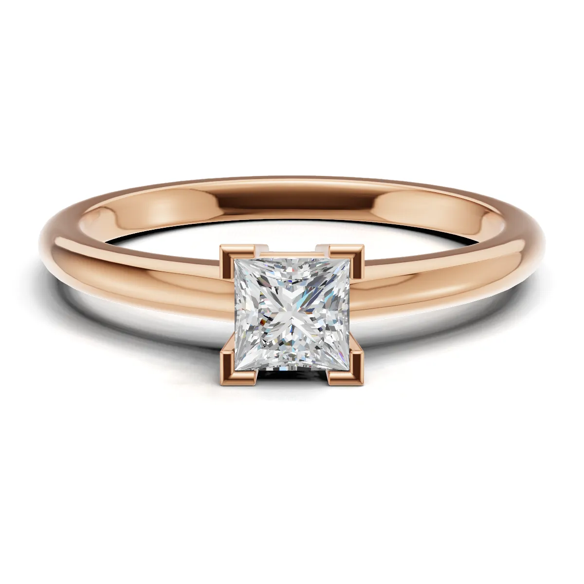 Klare Linien, starke Wirkung – dieser Solitär-Ring wurde speziell für einen Princess-Cut-Diamanten entworfen. Die markante, eckige Form des Steins wird durch vier kantige Krappen gehalten, die sich passgenau über die Ecken legen. So ist der Diamant nicht nur optimal geschützt, sondern seine geometrische Form wird zusätzlich betont. Die schlichte Fassung lässt den Princess-Cut für sich sprechen: modern, gradlinig und brillant. Das schlanke Ringband rundet das Design ab und lenkt den Blick ganz auf den zentralen Stein.