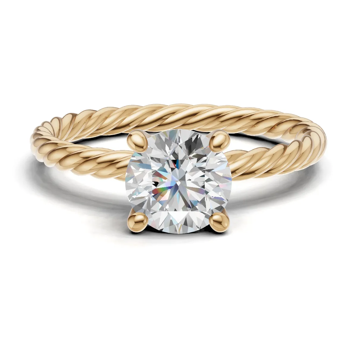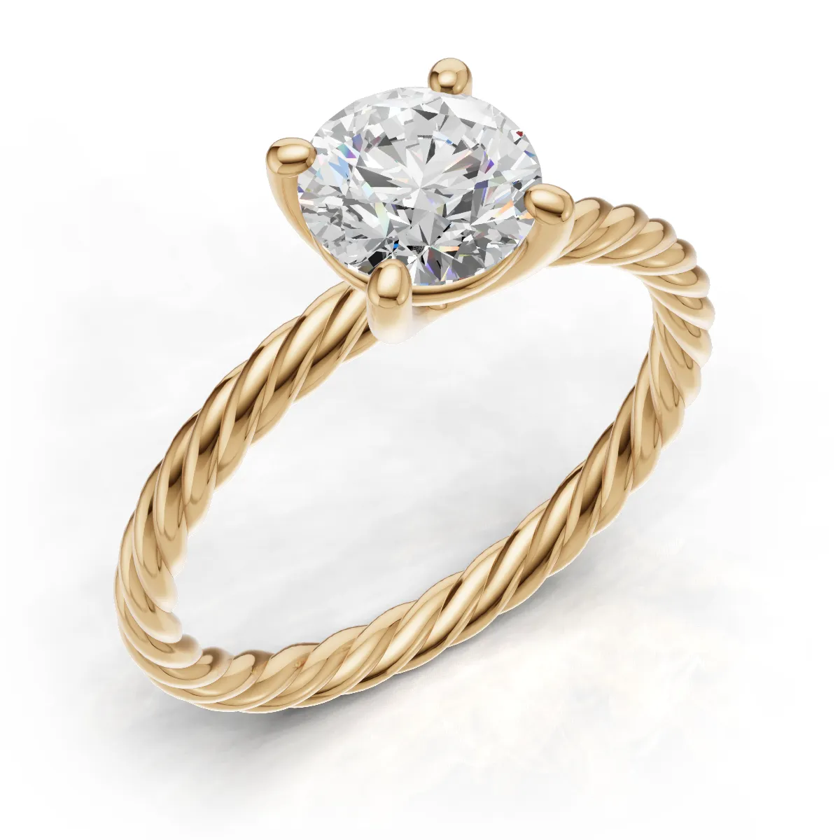 1 Karat Solitär in Kordeloptik für Brilliant-Cut in 18K Gelbgold
